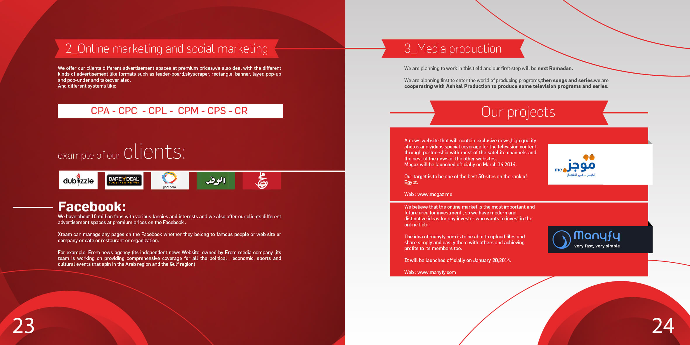 xteam Company Profile It is a Digital Marketing Agency serving a number of high profile clients in Egypt and the middle east. We made its company profile as a design and text contains their identity. Client: Xteam Digital Marketing Location: Cairo, Egypt Date: July 7, 2016 Category: Creative & Design, Print Share: